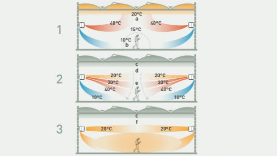 Its high airflow volume and Smart Jet nozzles ensure even temperature distribution, preventing hot and cold spots that are common in large or high-ceiling spaces.