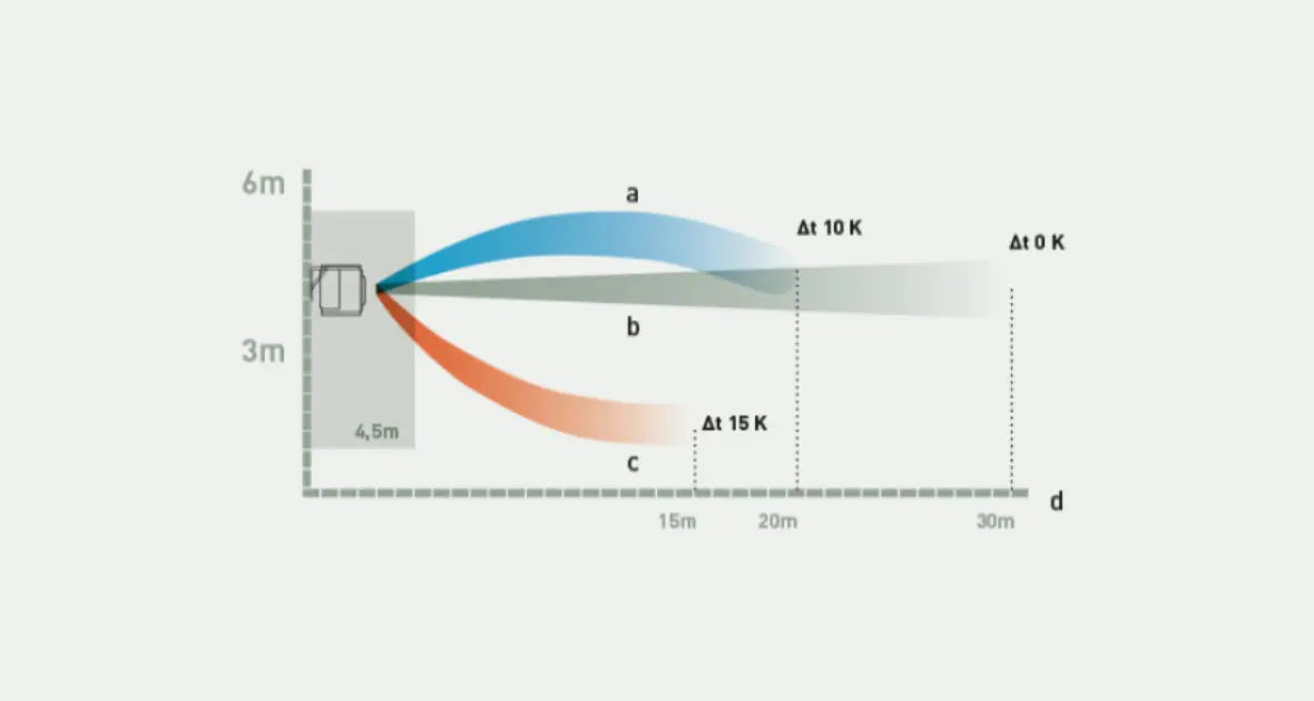 With airflow reaching up to 30 metres, Jet Air Stream covers even the deepest zones of large spaces, often replacing the need for multiple units and simplifying installation planning.